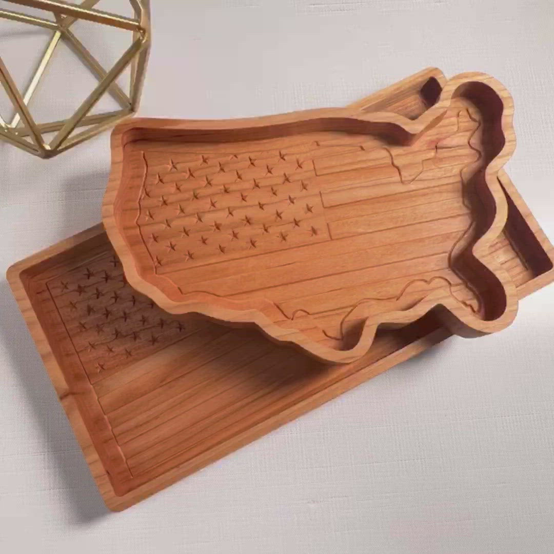 This tray is the perfect way to show your patriotism and style at the same time! The hardwood construction is durable and stylish, while the engraved flag design adds a unique touch. Use it as a catchall tray for keys, jewelry, or other small items, or even as a decorative accent piece on your table or desk. We make them out of hardwood, obtained from sustainable sources, to ensure its strength and durability, with a kiln drying process that allows for a beautiful finish.