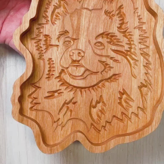 This is no ordinary wood tray! It's a Pomeranian wood tray, which means it has a cute dog face carved into the hardwood; makes a perfect gift for a dog lover! We make them out of hardwood, obtained from sustainable sources, to ensure its strength and durability, with a kiln drying process that allows for a beautiful finish.